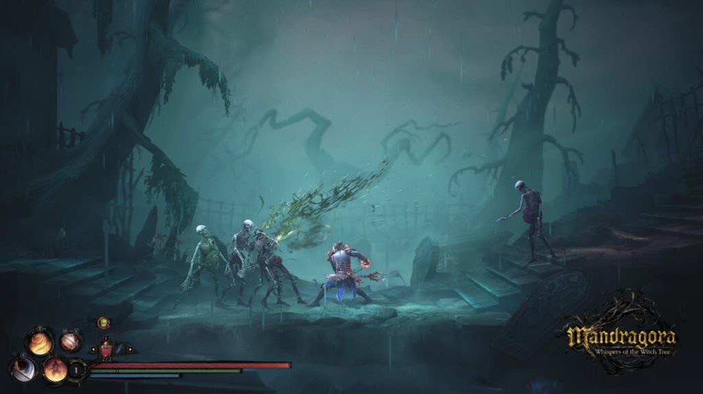 Em Mandragora, o cenário é parte do desafio. Muito além do visual artístico, o mapa está cheio de armadilhas, caminhos secretos, inimigos emboscados e itens escondidos. Fique de olho nos detalhes ao fundo, no alto das plataformas e em áreas aparentemente inacessíveis.