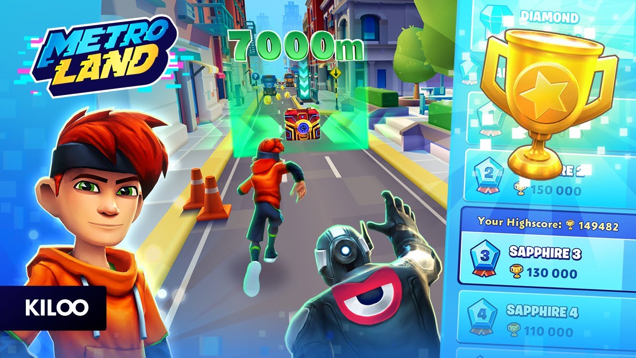 MetroLand transporta o jogador para um futuro urbano, tecnológico e agitado, onde correr é mais do que apenas um reflexo — é uma forma de liberdade. No papel de um jovem rebelde que desafia o controle de uma megacorporação, o objetivo é simples, mas viciante: correr o mais longe possível, desviando de trens, drones e obstáculos que surgem em alta velocidade.