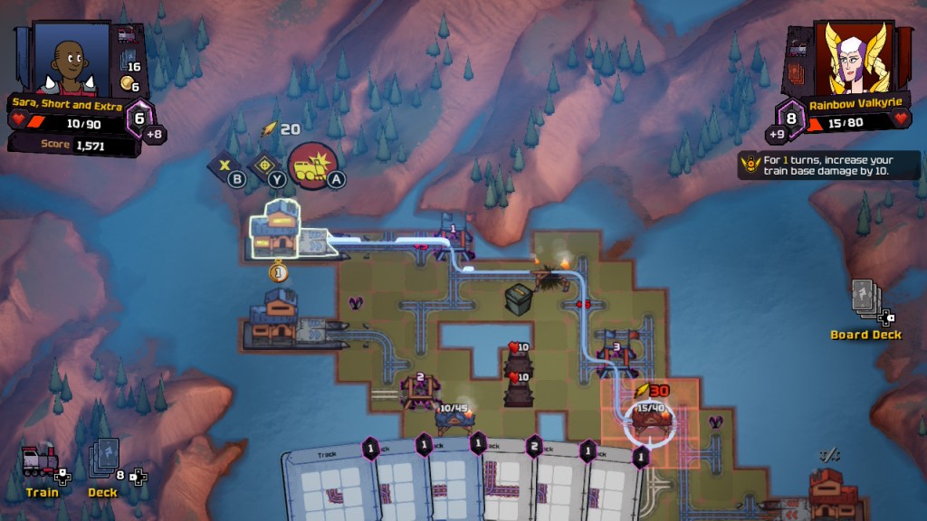 Apesar de tudo isso, Battle Train não escapa de tropeços. As partidas, especialmente contra chefes, podem se arrastar por até 40 minutos, criando um desgaste mental maior do que o esperado. A dificuldade é um tanto instável: inimigos controlados pela IA parecem, às vezes, prever exatamente o que o jogador fará, ativando cartas “milagrosas” no momento perfeito. Isso levanta dúvidas sobre o equilíbrio da inteligência artificial.