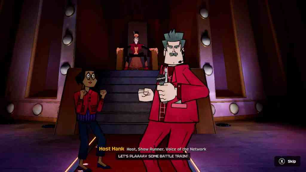 O ponto de partida de Battle Train é uma sátira genial ao formato de programas de auditório. Aqui, você não é apenas um jogador tentando vencer duelos — você é o participante de um reality show fictício comandado pelo enérgico apresentador Hank, que mais parece ter saído de um desenho do Cartoon Network. A missão? Construir trilhos, montar estratégias com seu baralho de cartas e destruir os postos inimigos em duelos 1×1 repletos de tensão e decisões difíceis.