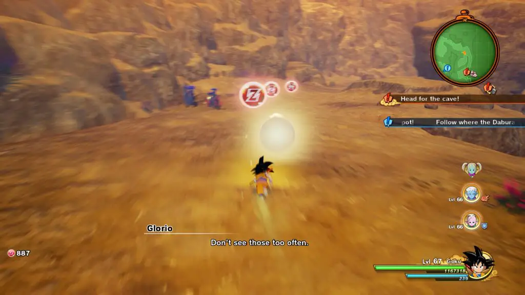 Ao lado de Glorio — o enigmático guia — e Panzy — uma jovem demoníaca determinada a salvar seu povo da tirania de Gomah —, Goku e Shin formam um grupo improvável, mas extremamente carismático. O destaque está nos diálogos que surgem espontaneamente durante a exploração: desde brincadeiras infantis até reflexões sobre o destino do Reino dos Demônios. São interações que aprofundam a personalidade dos personagens e fazem com que o jogador se importe com essa nova narrativa.