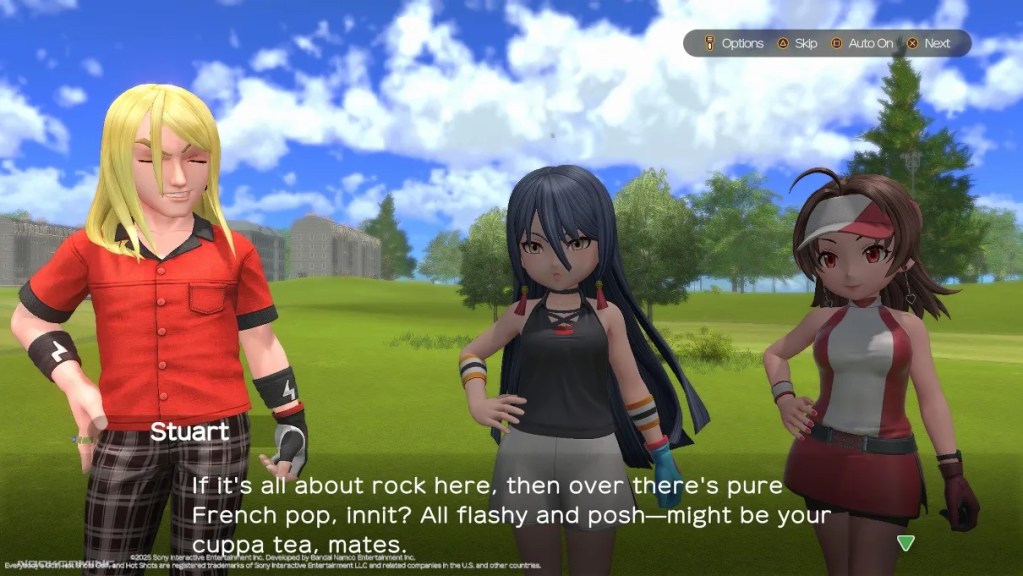 A série Everybody’s Golf (conhecida como Hot Shots Golf nos EUA) existe desde os tempos do primeiro PlayStation e sempre foi lembrada pela mistura de mecânica simples com profundidade suficiente para manter o jogador engajado. Em Hot Shots, o sistema de três cliques volta com força: escolher a direção, medir a potência e acertar o tempo do impacto. É uma fórmula que parece antiquada para alguns, mas que ainda entrega momentos de pura satisfação quando você acerta aquele drive perfeito ou um putt milimétrico.