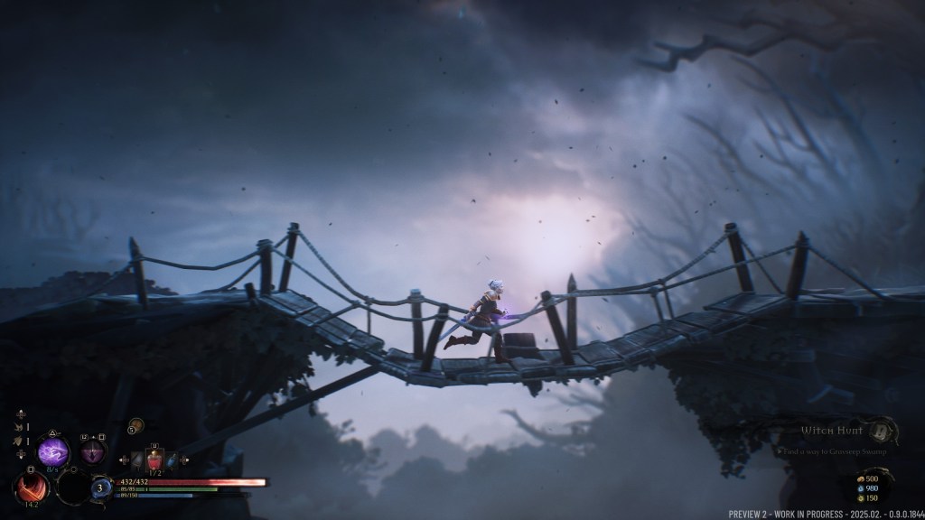 O centro da operação do jogador é a Árvore das Bruxas, um hub que evolui conforme você avança na história e resgata aliados. Nele é possível aprimorar equipamentos, aceitar contratos e expandir o mapa com fragmentos encontrados pelo mundo, criando um sentimento de progresso constante e reconfortante.
