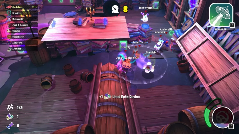 O jogo ainda conta com um sistema de recompensas simples, mas eficiente. Os jogadores podem completar desafios diários e semanais para acumular uma espécie de “moeda de doce”, usada para decorar seu espaço pessoal ou desbloquear novos visuais para os Polterguys. Essa camada extra de personalização incentiva o retorno frequente, especialmente para aqueles que gostam de colecionar itens.