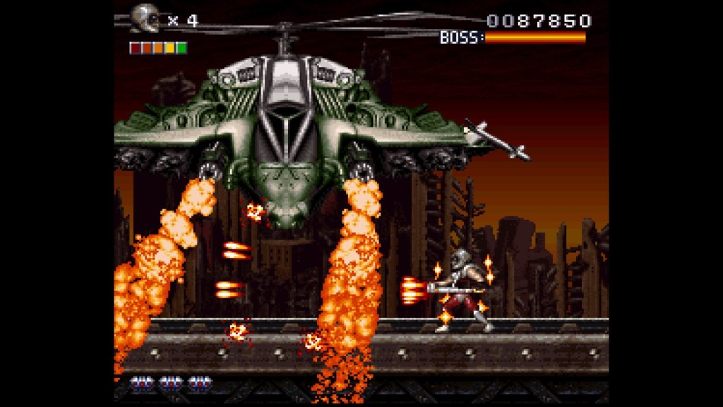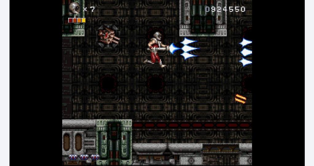 No modo terrestre, o jogador controla um soldado futurista que pode correr, pular e disparar em múltiplas direções. Já nos segmentos espaciais, ele pilota uma nave altamente armada, enfrentando ondas de inimigos e chefões colossais. Essa troca constante de mecânicas ajuda a manter o ritmo ágil e imprevisível, tornando a experiência sempre fresca e desafiadora.