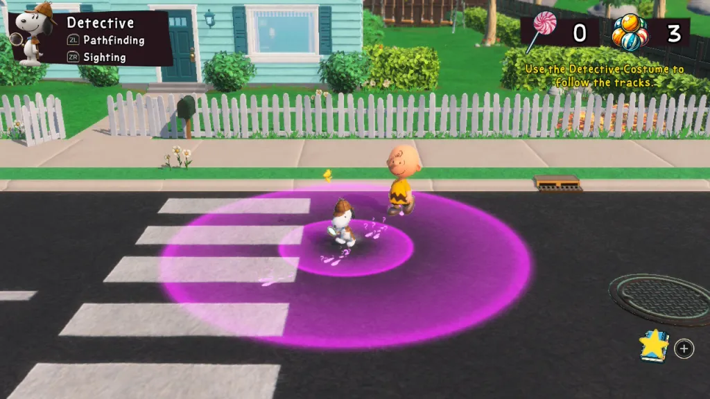A jogabilidade é simples, intuitiva e pensada para divertir sem frustração. O jogador pode andar livremente pelo bairro, conversar com os personagens e usar as diferentes fantasias de Snoopy para cumprir as tarefas. Cada traje dá acesso a habilidades específicas — como investigar pistas com uma lupa, cavar em busca de tesouros ou até usar o faro para encontrar objetos escondidos. Essas mudanças de visual tornam o progresso leve e variado, incentivando a criatividade e a exploração.
