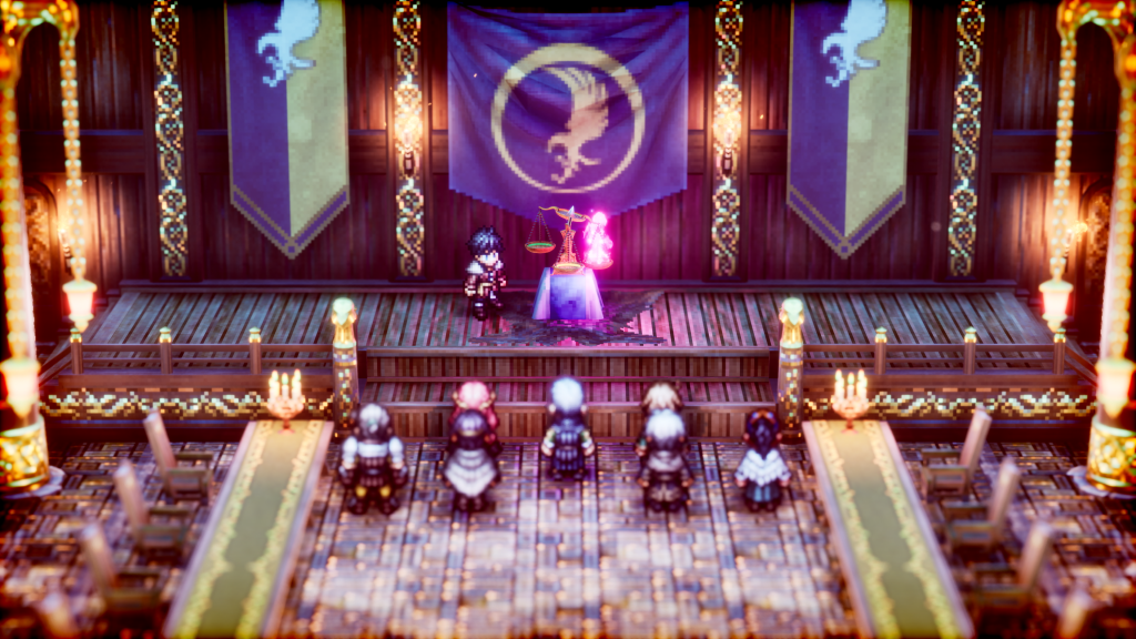 A narrativa não é apenas um pano de fundo para as batalhas. Pelo contrário, ela é o coração do jogo. O jogador é constantemente confrontado com dilemas políticos e éticos, que vão muito além do bem contra o mal. Escolher entre manter uma aliança ou trair em busca de vantagem pode mudar o rumo dos eventos de forma drástica, e é nesse ponto que Triangle Strategy se destaca de outros jogos do gênero.