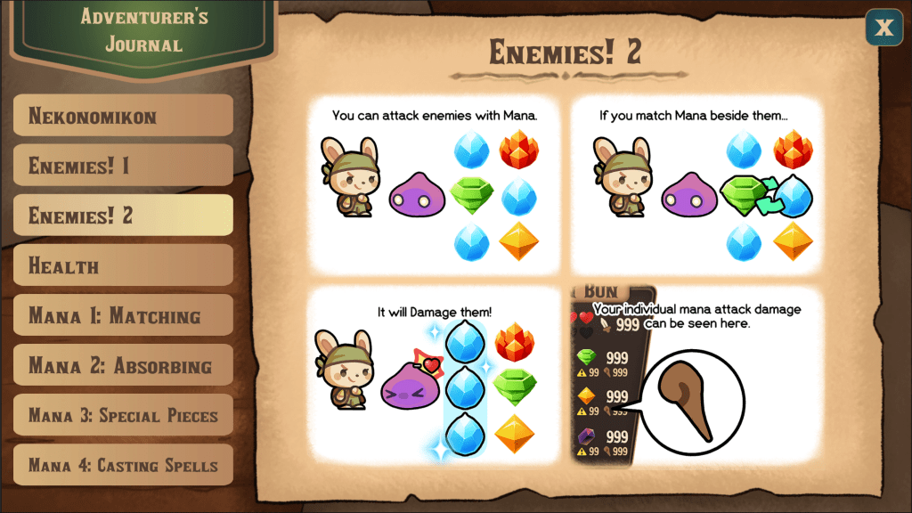 A estrutura básica de Roguematch é simples de entender, mas difícil de dominar. Cada sala funciona como um pequeno tabuleiro tático, onde o jogador se movimenta por turnos enquanto enfrenta inimigos posicionados estrategicamente. O diferencial está no grid de mana, que ocupa o cenário e serve como combustível para magias, ataques especiais e interações com o ambiente.
